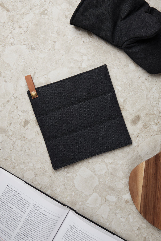 Kestävä ja tyylikäs patalappu on valmistettu korkealaatuisesta kivipestystä canvaskankaasta. Paksu kangas tarjoaa erinomaisen suojan lämmöltä ja pehmeä sisävuori varmistaa mukavan otetuntuman.